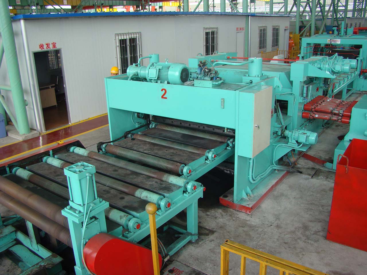 Cette ligne se compose de décharge coupée, dérouleur à pivot unique, pré-nivellement, pont hydraulique à boucle, correcteur de déviation, nivellement fin, jauge de longueur servo, cisaille, convoyeur à bande, déchargeur inversé, empileur, chariot de déchargement, système de transmission servo, système hydraulique, etc.